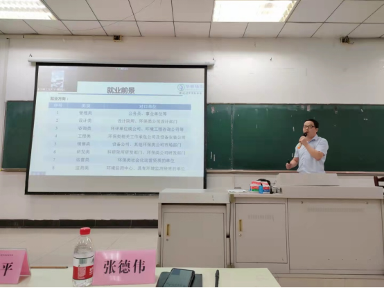 张德伟结合自己在校期间的学习和工作经历,给刚刚进入大学的新生上了一堂别开生面的专业教育和行业发展形势教育课。他先后向新生们介绍了华骐环保公司的发展历程、公司的业绩、公司的91tv以及公司对环境、环保和能源人才的需求等方面进行了讲演。会场气氛热烈,不时响起热烈的掌声