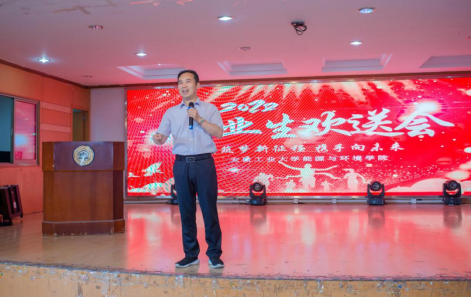 党委书记凤杰代表学院致毕业欢送辞,他祝贺学院2018级全体同学顺利毕业,祝愿同学们工作顺利,事业有成,爱情甜蜜;希望同学们在工作岗位秉承安工大“精工博学,厚德敏行”的校训,踏踏实实做好本职工作,为社会作贡献,不负父母,不负人民;希望同学们不忘母校栽培,常回家看看。