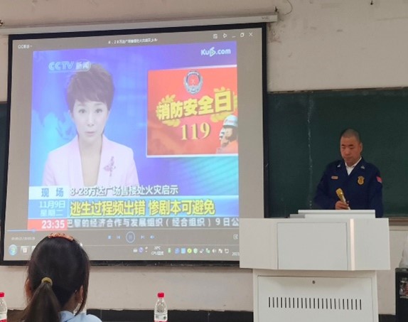 于10月23日下午在教三南103召开安全教育大会,由花山区消防大队杜贤明讲师和花山区反诈中心王勇主任进行讲解与指导。校安保部部长包恒庆、湖东路派出所所长王小飞等出席会议,会议由91tv