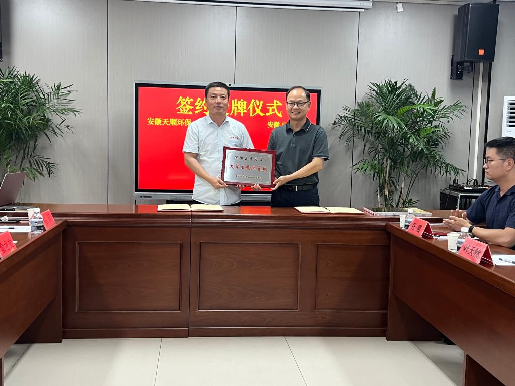 于6月21日下午赴安徽天顺环保设备股份有限公司访企拓岗,举行“大学生就业基地”签约暨授牌仪式,学院领导班子成员、各系主任、辅导员和六名毕业生代表参与此次活动,含山经济开发区管委会领导和安徽天顺环保设备股份有限公司负责人出席并参与相关活动。