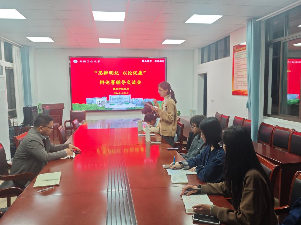 纪委于11月5日晚上在能源楼325专题开展了辩论赛辅导交流会。会议由2024级辅导员范浩东主持,学院党委副书记、纪委书记卫军帅莅临指导,院辩论队全体队员参与。