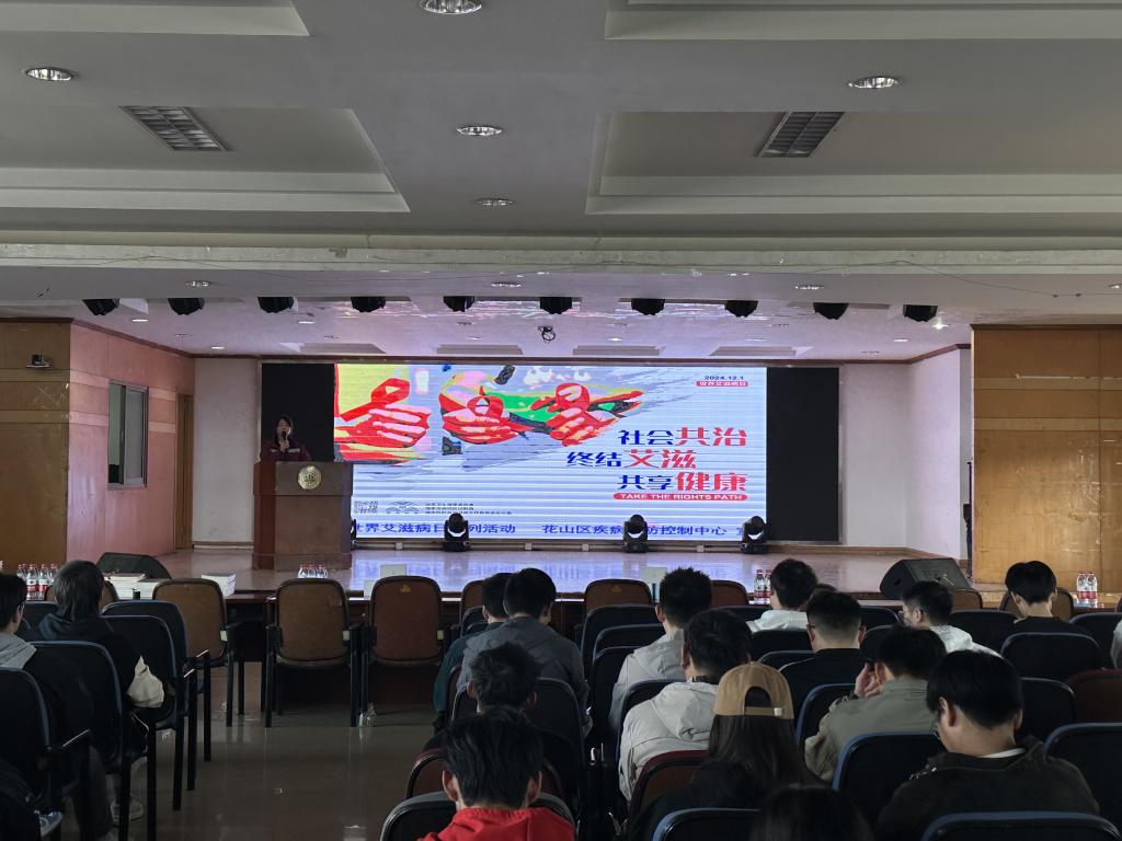 于12月2日在本部老大活举办了艾滋病预防和结核病防治知识讲座。讲座由花山区卫健委应急办主任王媛主讲。