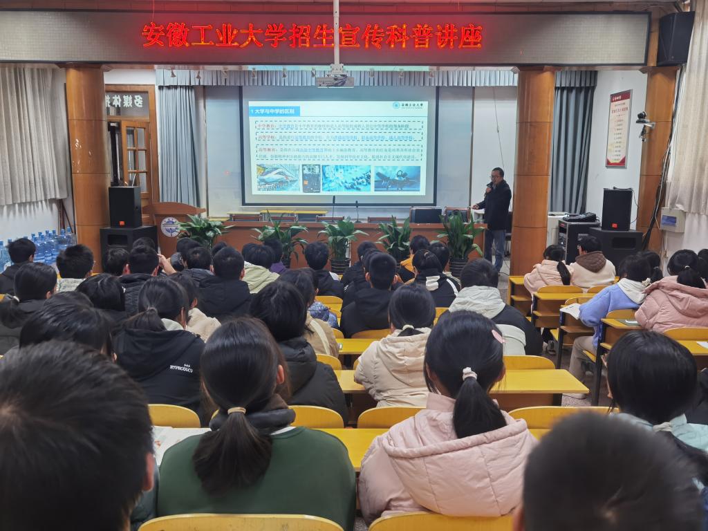 12月5日,卫军帅一行来到舒城中学,报告会上贾勇详细介绍了我校环境工程专业的学科优势、师资力量、科研成果以及就业前景等方面的情况。他还结合自身的科研经历,分享了环境保护领域的一些前沿技术和发展趋势。报告会现场气氛热烈,互动频繁,学生们表示受益匪浅。