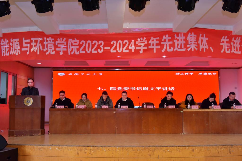于12月30日在佳山校区大学生活动中心举行2023-2024学年先进集体、先进个人表彰大会。院党委书记谢文平、副院长楚化强、各教工支部书记、系(室)主任、全体辅导员、班主任、导师代表、受表彰的先进集体、先进个人以及各年级学生代表300余人参加本次会议。院党委副书记、副院长卫军帅主持会议。