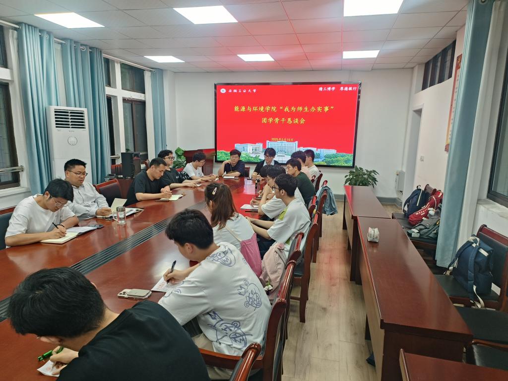 在能源楼325会议室召开"我为师生办实事"团学骨干恳谈会。学院党委副书记、副院长卫军帅出席会议并与学生座谈交流,会议由院团委书记沈厚发主持,相关老师及主要团学骨干参会。