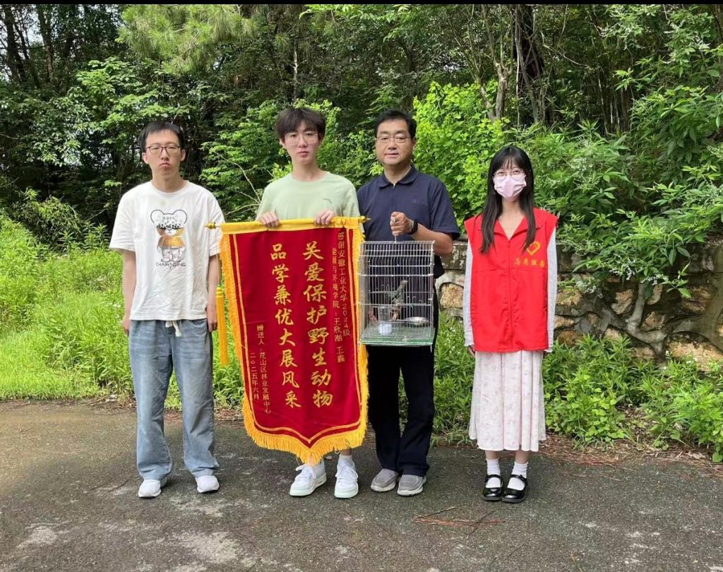 环243班王欣湉和王鑫在暴风雨后救助了一窝落单的幼鸟,并主动报告了辅导员。在联系到花山区林业局后,幼鸟被鉴别确定为中国“三有”保护动物——丝光椋鸟,并被妥善照顾喂养。