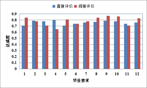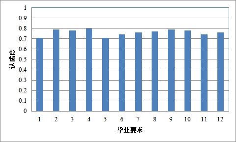 各项毕业要求达成度的最小值建议不低于0.7(根据我校规定的授予学士学位的平均学分绩不小于70分确定)作为合格标准。各项毕业要求达成度评价值是专业提出持续改进方案的基础数据。